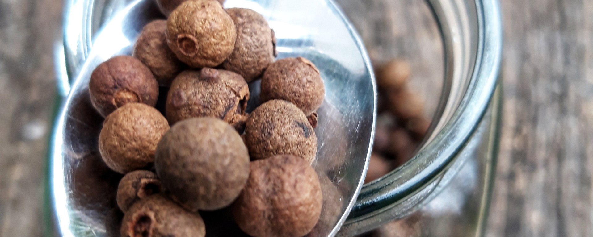 Ienibaharul a fost descoperit în secolul XVI în Jamaica, de către exploratorii spanioli, care au crezut că e piper. În engleză poartă și denumirea de allspice, pentru că aroma ienibaharului seamănă cu un amestec de alte mirodenii, în special de cuișoare cu piper negru, deși unii spun că pot detecta și note de nucșoară și scorțișoară.