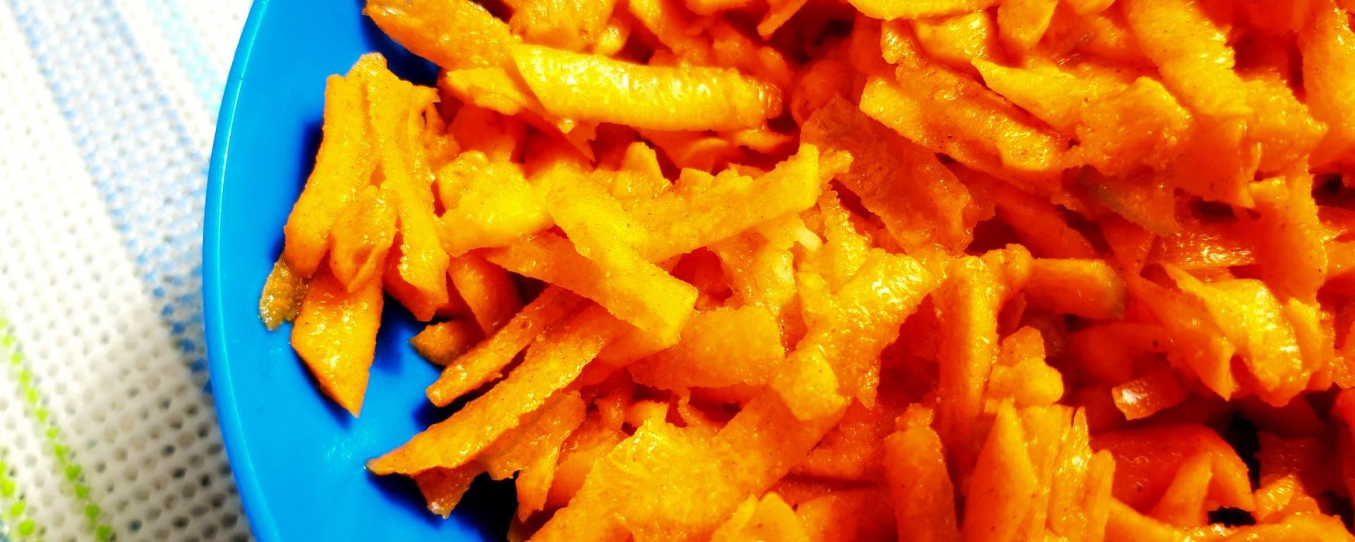 Primesc foarte mulți morcovi de la fermă și la început nu știam ce să fac cu atâția. Pregăteam supă cremă de morcov, îi foloseam ca bază pentru mâncăruri și îi mai puneam în salate feliați subțire, dar tot erau mulți. Între timp, de când am descoperit salata crudă de morcov cu mirodenii și Morcovii cu tahini, aproape că nu ne mai ajung. E o rețetă furată după degustare, am descoperit-o într-o șaormerie din Cluj, unde o prietenă gurmandă m-a dus special pentru salata lor de morcov.