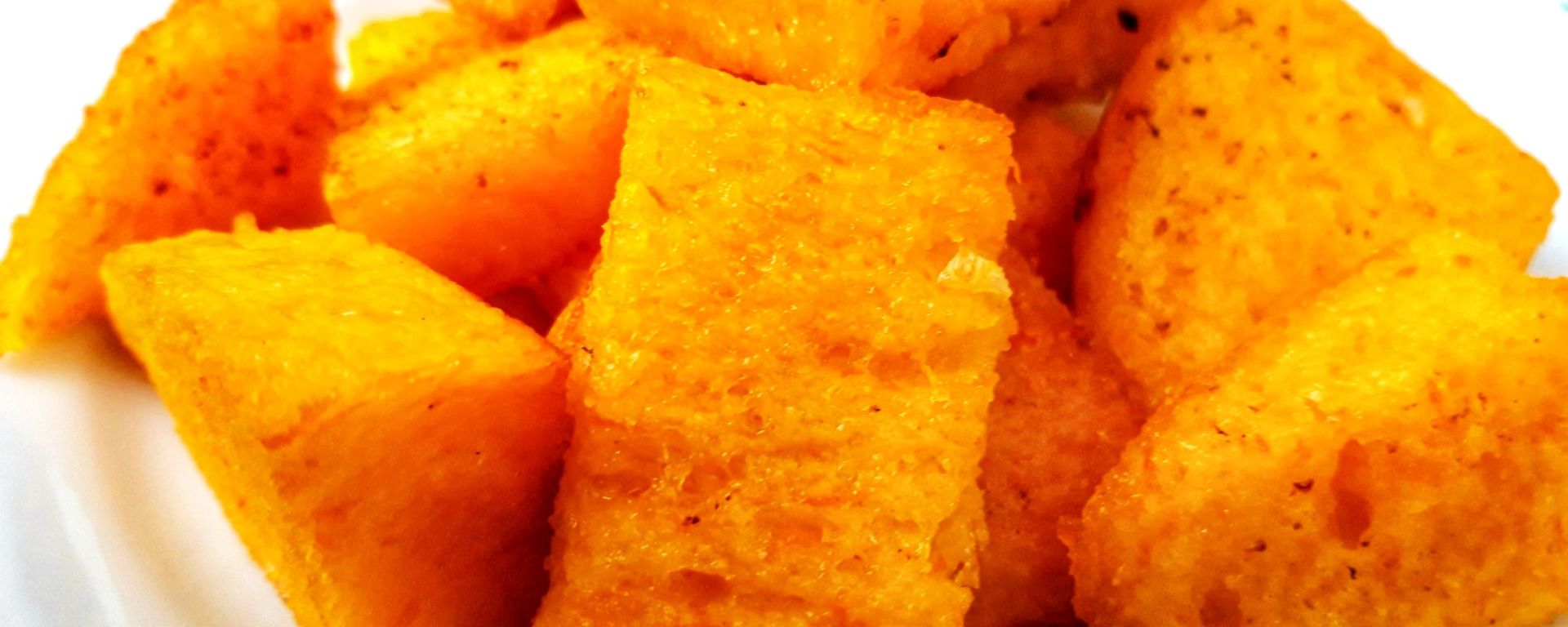 Când mămăliga este gata, răsturnați în ce formă preferați și lăsați-o să se răcească. Apoi tăiați cu grijă mămăliga cu o ață sau cuțit în cuburi/ fășii cât un deget de groase.