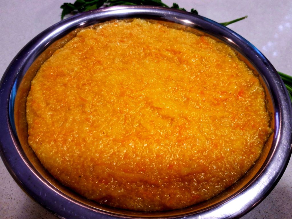 Îmi place mămăliga, și de când al meu și-a descoperit o intoleranță la gluten, mămăliga și variațiunile ei mi se par înlocuitori ideali pentru pâine. Se face repede și ușor, singura parte complicată e că trebuie amestecată tot timpul. O folosesc și pe post de gustare pentru cea mică, așa că am decis să îi adaug 2-3 legume pentru un plus de aromă și consistență.
