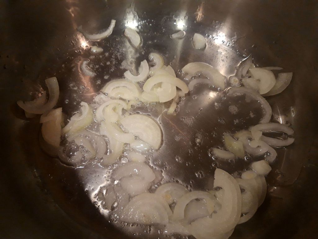 Încingem bine uleiul și punem ceapa la călit 2-3 minute.