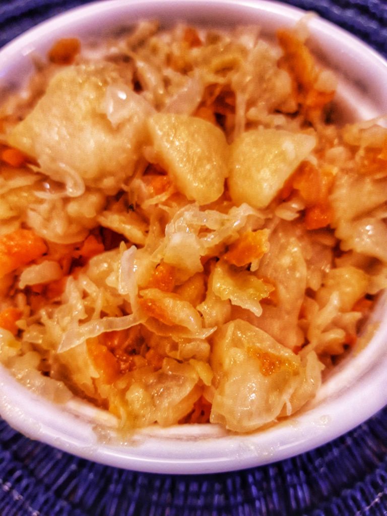 Cartofi cu varză: o asociere atât de veche și banală, minunată pe vreme rece, hrănitoare și foarte gustoasă. Mâncarea de varză cu cartofi este sățioasă și bogată în carbohidrați, fibre și probiotice de la varza murată.