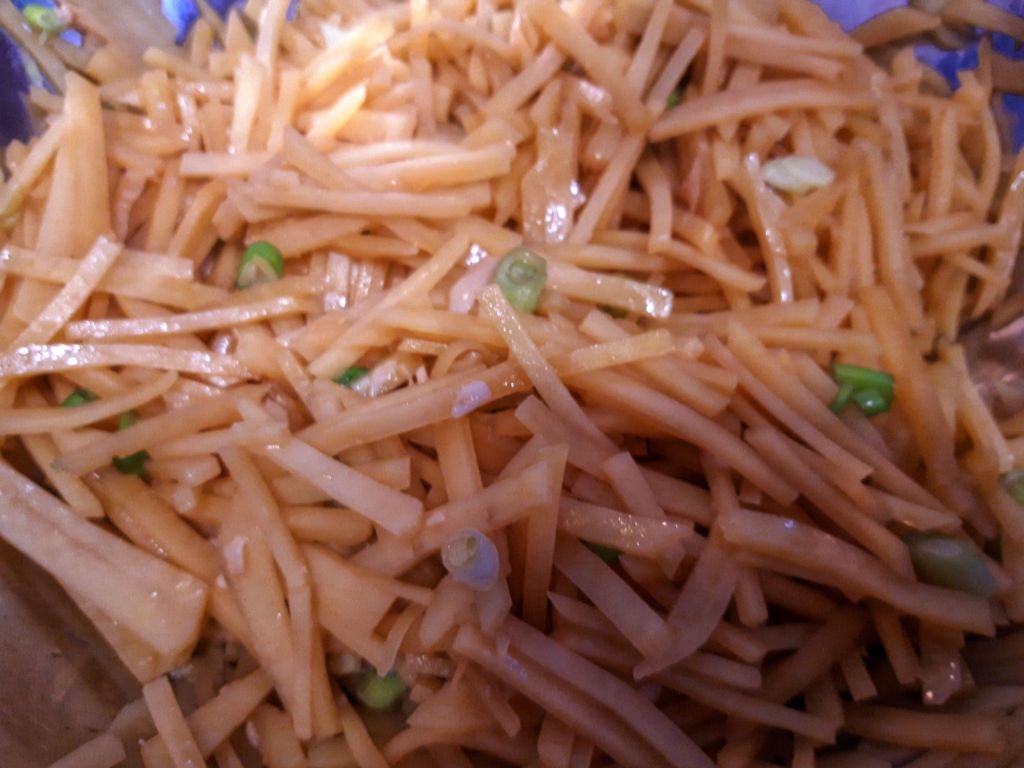 Cheia e să nu fierbem mult cartofii, ci să îi lăsăm mai al dente. Pe lângă faptul că e foarte simplu de făcut, rețeta chinezească de cartofi conține 4 ingrediente: cartofi, usturoi, ceapă verde sau alte verdețuri și sos de soia.