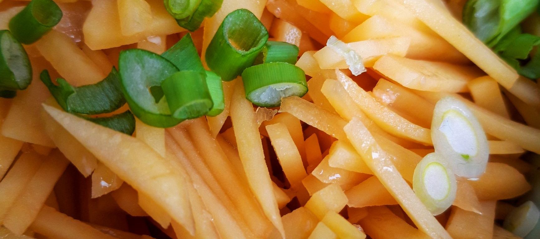 Cheia e să nu fierbem mult cartofii, ci să îi lăsăm mai al dente. Pe lângă faptul că e foarte simplu de făcut, rețeta chinezească de cartofi conține 4 ingrediente: cartofi, usturoi, ceapă verde sau alte verdețuri și sos de soia.