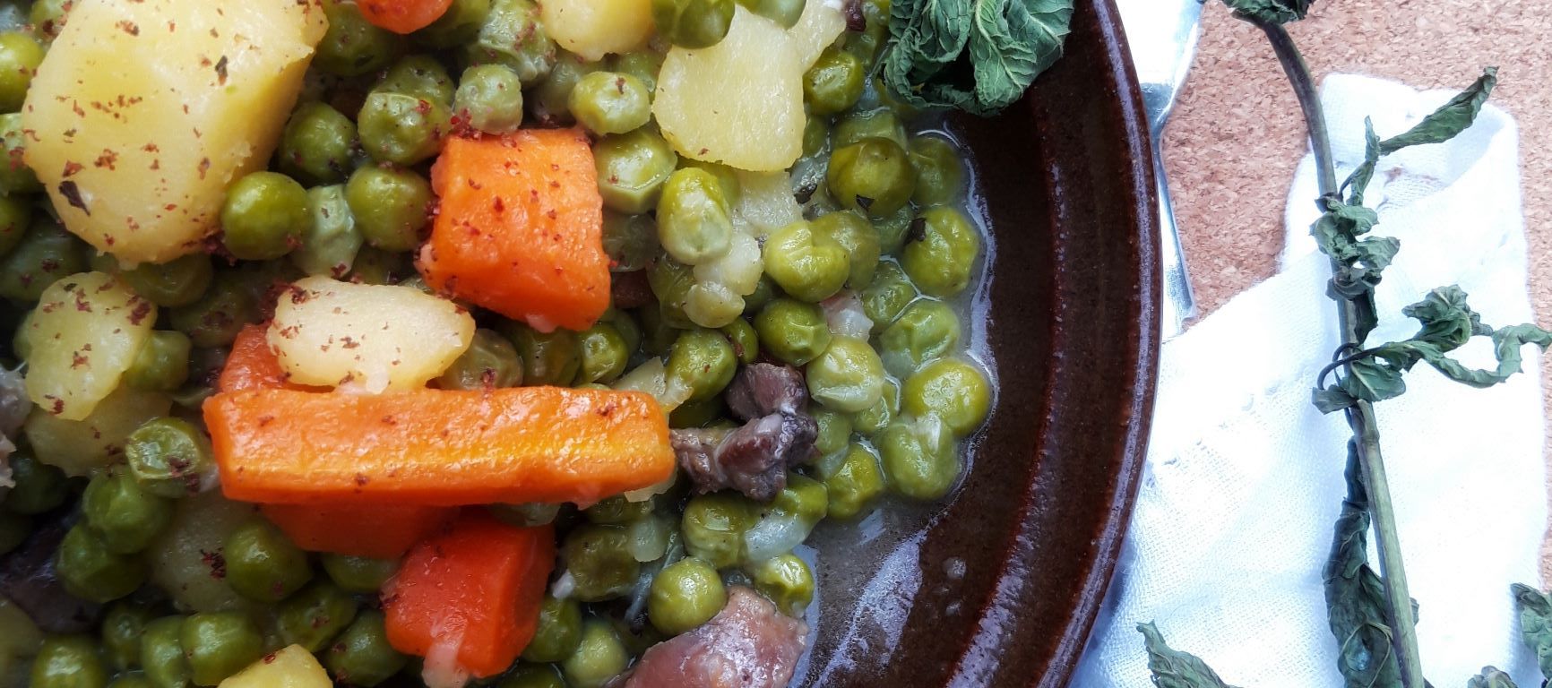 Mâncarea de mazăre cu pipote și inimi e o rețetă veche, din copilărie pe care am redescoperit-o de vreo 3 ani. Ne place tuturor textura organelor, dulceața mazărei și a cartofilor și aromele noi de busuioc și mentă pe care le-am adăugat. Nu e musai să puneți, nouă așa ne place. Dacă vreți să experimentați arome noi, puteți intra pe mazăre și alege de-acolo alte arome care vă fac cu ochiul și pe care le aveți prin casă.