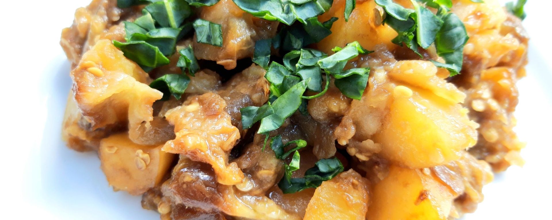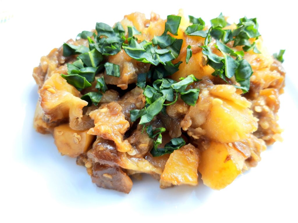 Mâncarea de vinete cu cartofi, varianta chinezească este mult mai simplu și rapid de făcut decât pare. O rețetă cu puține ingrediente: vinete, cartofi, usturoi, ghimbir și sos de soia, e potrivită pentru prânz sau cină.