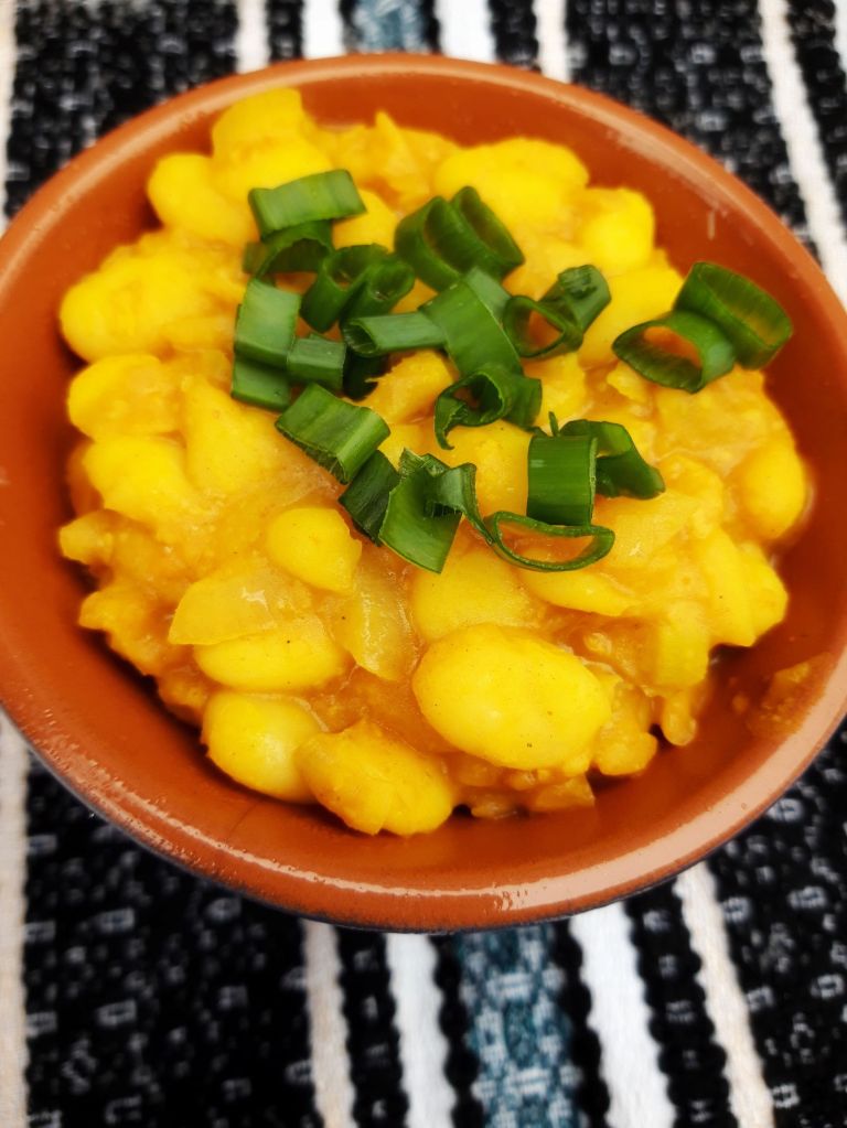 Începem cu partea cea mai „complicată”, fierbem fasolea. După ce am lăsat-o o noapte la înmuiat în apă rece cu zeamă de lămâie, o scurgem, adăugăm apă curată și o punem la fiert. Eu schimb primele 3 ape, scurg fasolea și completez cu apă fierbinte. În vremuri normale, după ce schimb cea de-a treia apă adaug în fasole un morcov, 1 păstârnac și o ceapă. Acum am fiert-o simplu, fără legume și constat că e la fel de gustoasă:) Curry-ul de fasole merge foarte bine și cu fasole din conservă.