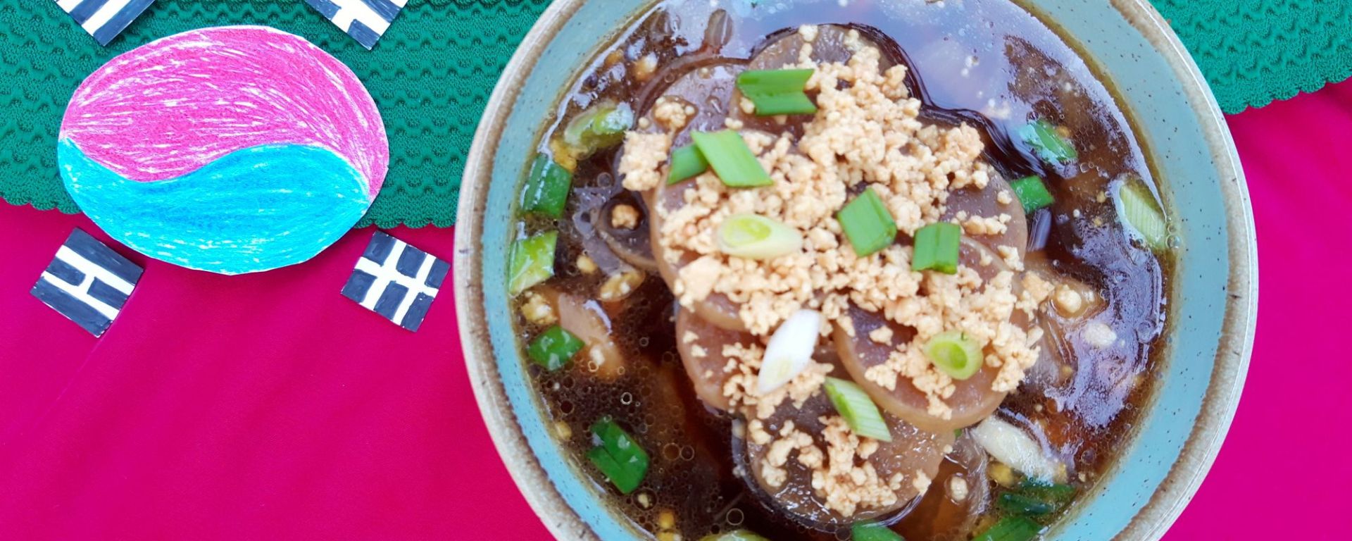 Cum gatesc cu Ava, joaca din timpul pregatirii supei a fost sa desenam/ coloram/ decupam steagul Coreei si sa dansam ca ei.