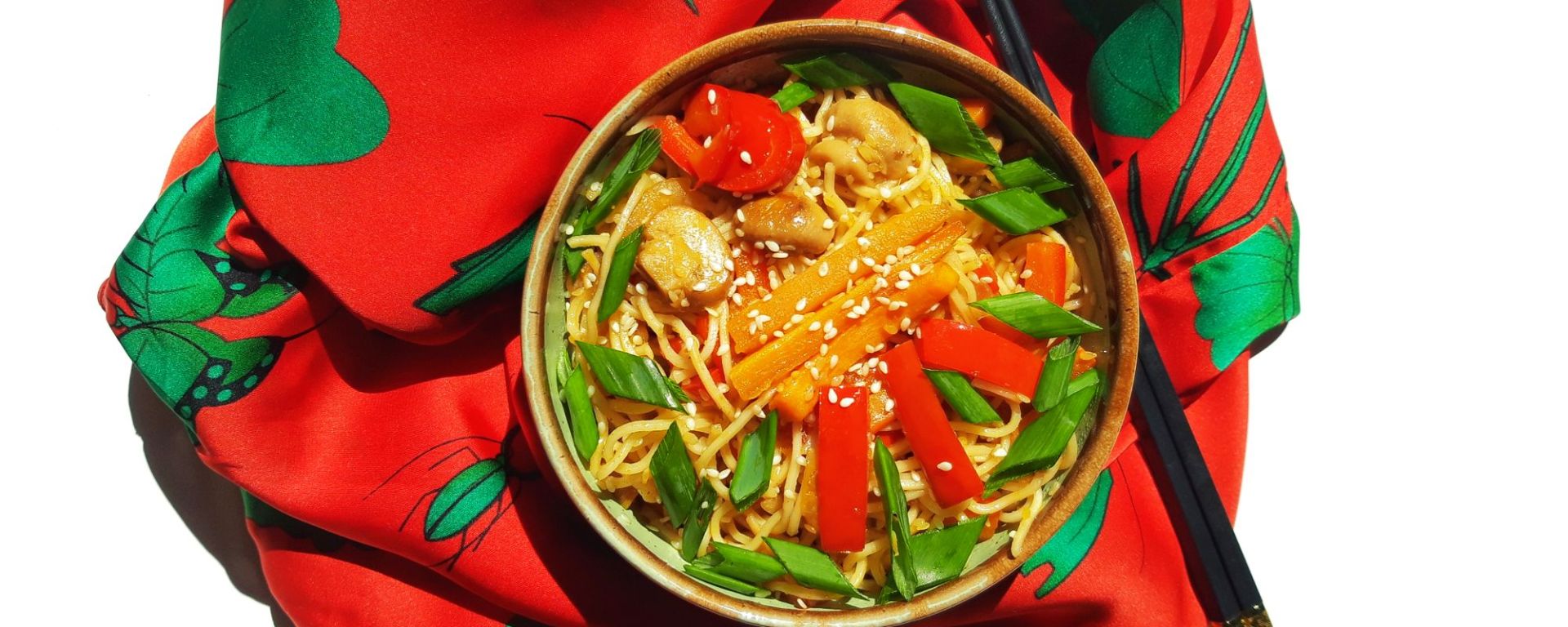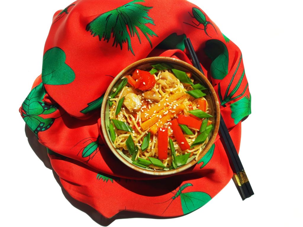 Tăițeii chinezești cu morcov și ardei sunt una din cele mai gustoase și rapide mâncăruri pe care le fac de ani de zile. Mărturisesc că deși e o rețetă pe placul întregii familii (chiar și bunicii mănâncă noodles cu morcov și ardei), o pregătesc mai ales când sunt în pană de idei sau de ingrediente. Am mereu în cămara o pungă de noodles, morcovi și ardei se găsesc aproape tot timpul prin frigider, iar sosul de soia aproape că înlocuiește sarea la noi.