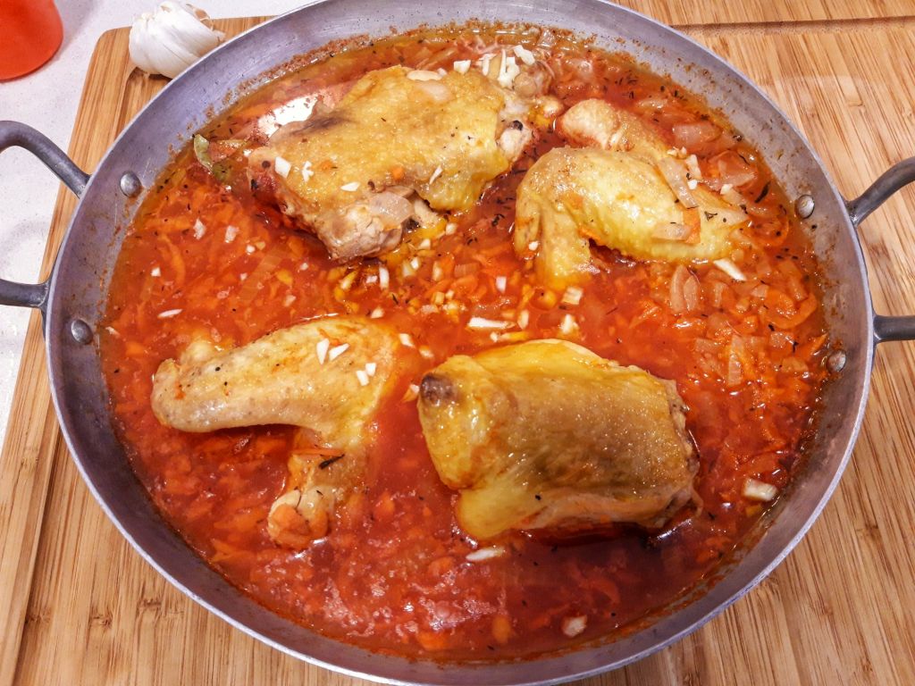 Ostropelul de pui e una din mancarurile care ma trimit inapoi in copilarie. Ostropelul si ciorba de spanac sunt primele mancaruri despre care am amintiri: ma si vad langa bunica, bucuroase amandoua ca am mancat cu pofta si ca mi-au placut. In plus, ostropelul e primul preparat in care am constientizat si m-am bucurat de prezenta condimentelor: cimbru si dafin.