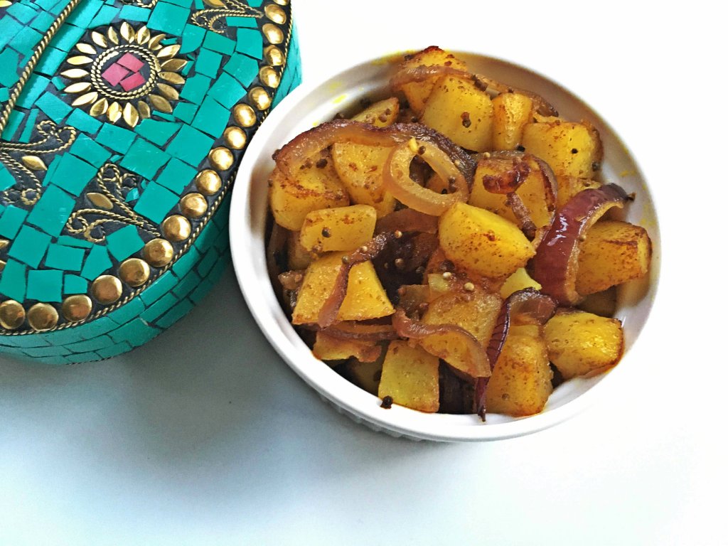 Cartofii sunt la îndemână în fiecare anotimp, și oricât de tare mi-ar plăcea, mărturisesc că m-am plictisit de rețetele consacrate. Am găsit în bucătăria indiană o rețetă simplă și gustoasă, care îmbină toate criteriile pe care le urmăresc la o mâncare: ușor de făcut, delicios și cu multe condimente.