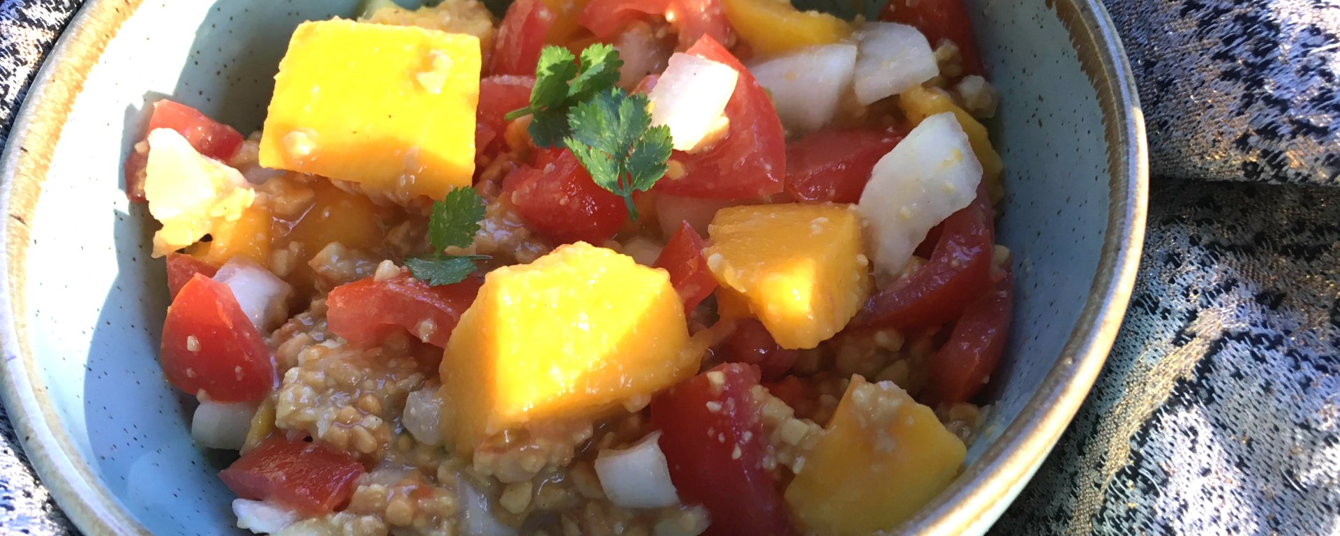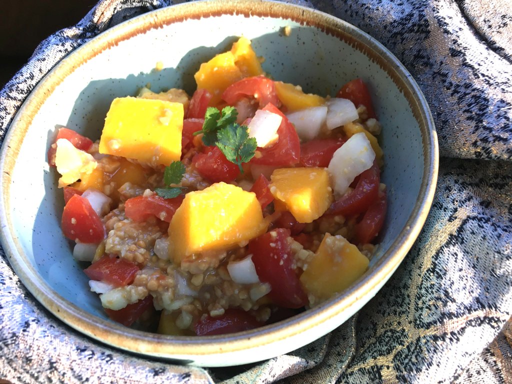 Salata asta a fost o revelatie pentru toata familia! Cand am facut-o a doua oara, taiam ingredientele iar fie-mea isi lua cate o bucata de rosie, una de mango si cate o arahida sa le manance impreuna, retinuse ce urmeaza!