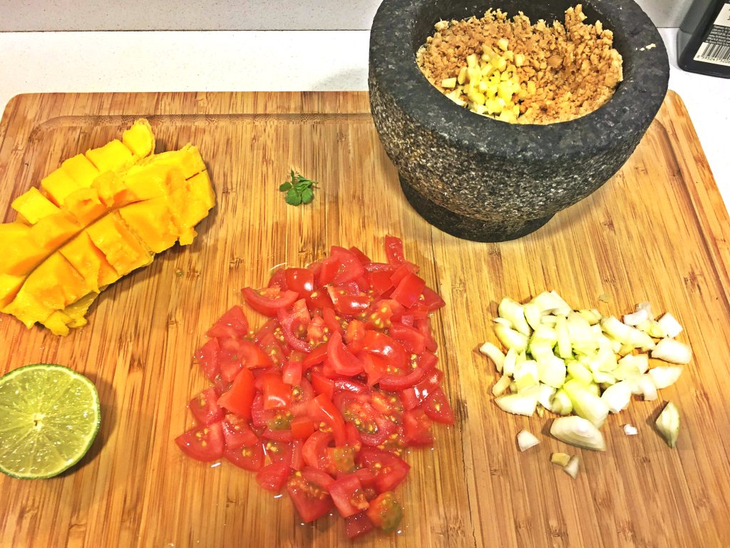 Salata asta a fost o revelatie pentru toata familia! Cand am facut-o a doua oara, taiam ingredientele iar fie-mea isi lua cate o bucata de rosie, una de mango si cate o arahida sa le manance impreuna, retinuse ce urmeaza!
