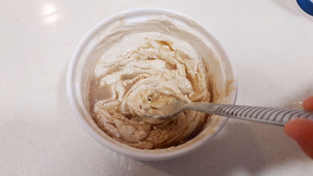 Între timp ne ocupăm de sosul tahini, care se obține amestecând bine cantități egale de pastă de tahini și apă foarte rece, de la frigider. Puteți adăuga sare și lămâie după gust. Am pus 2 lingurite de sos de rodie, si nu am mai folosit lămâie pentru că sucul de rodie era destul de acru.