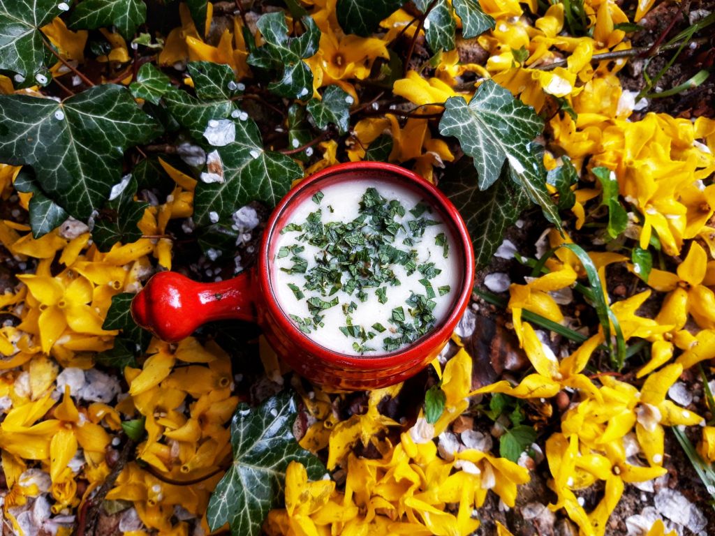 - menta proaspata, 1-2 maini, (plus o mana de decor si pentru vitamine) sau 2-3 lingurițe uscată