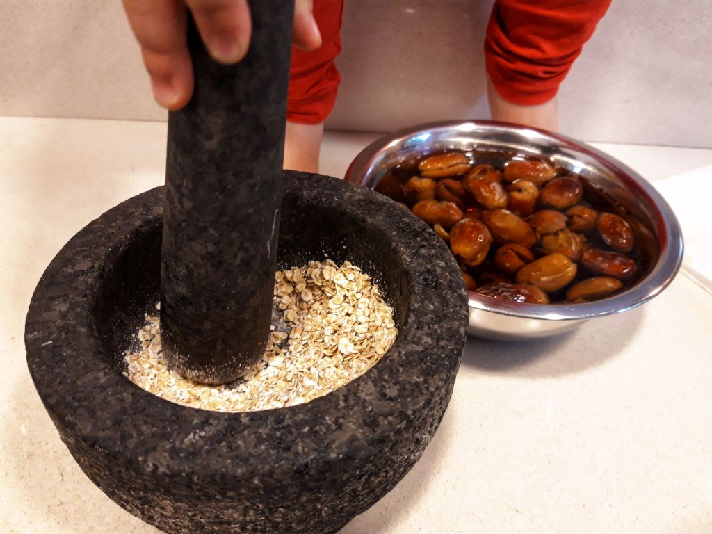 - faina de migdale, 5-6 linguri (poate fi inlocuita cu fulgi de ovaz, pisati)
