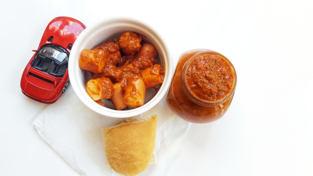 Nostalgii, junk food, guilty pleasures, cum vreti s-o numiti… Cert e ca sosul e super simplu si mai gustos ca majoritatea currywurstilor testati prin Germania si Austria;)