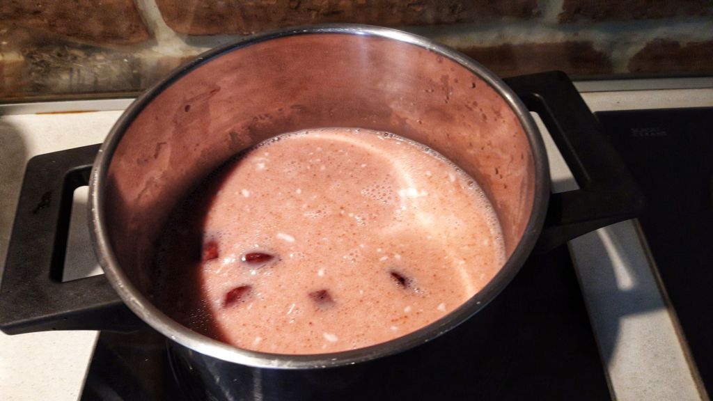 Eu fierb supele la foc mic, acoperite, cu capacul deschis intr-o parte sa nu mi se prelinga supa pe aragaz. Dupa 40 minute verific daca sfecla e facuta, adaug laptele de cocos si sare dupa gust si mai las sa fiarba la foc mic pana ce lichidul scade un pic.