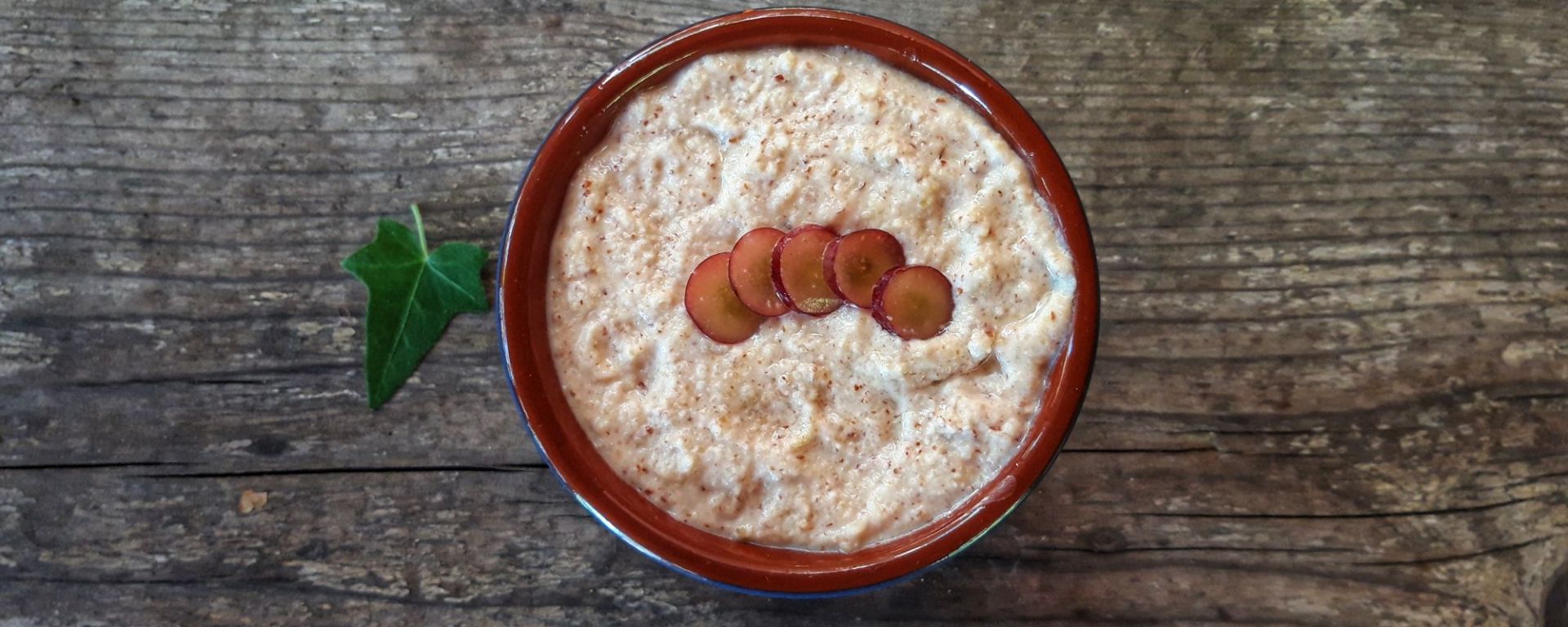 Supa de migdale din poza mea e ornata cu boabe de struguri.