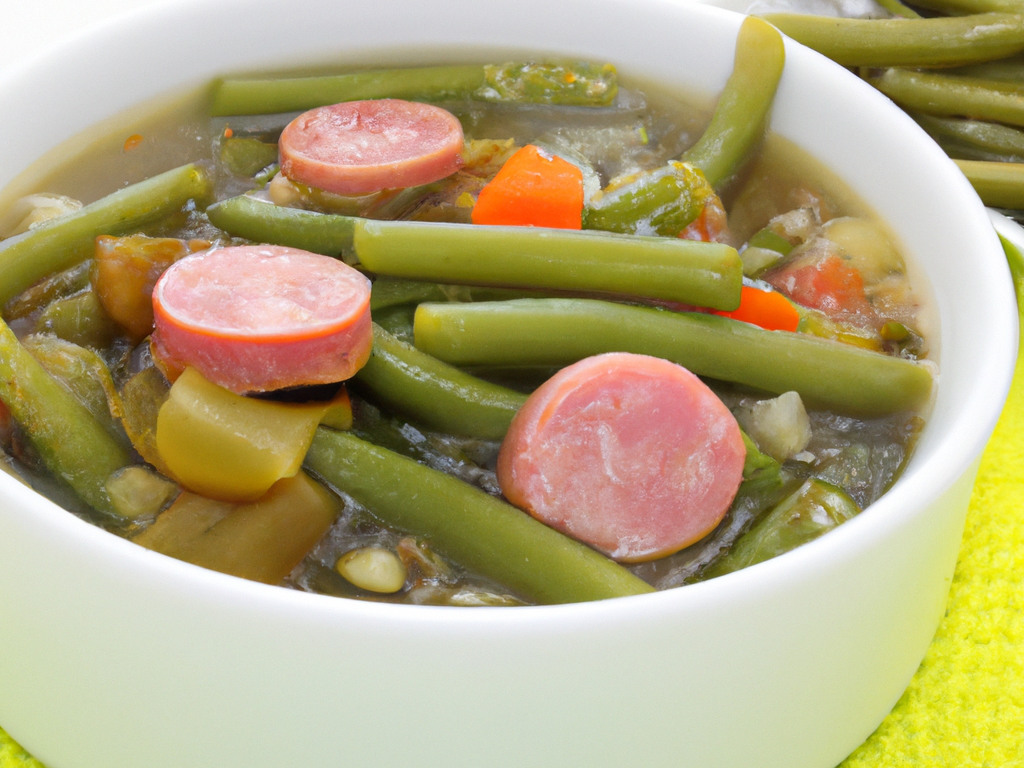 - Ciorba de fasole verde cu carnati poate fi servita cu smantana in prima, zi, cu ou fiert in ziua urmatoare sau cu multa ceapa verde sau alte verdeturi.