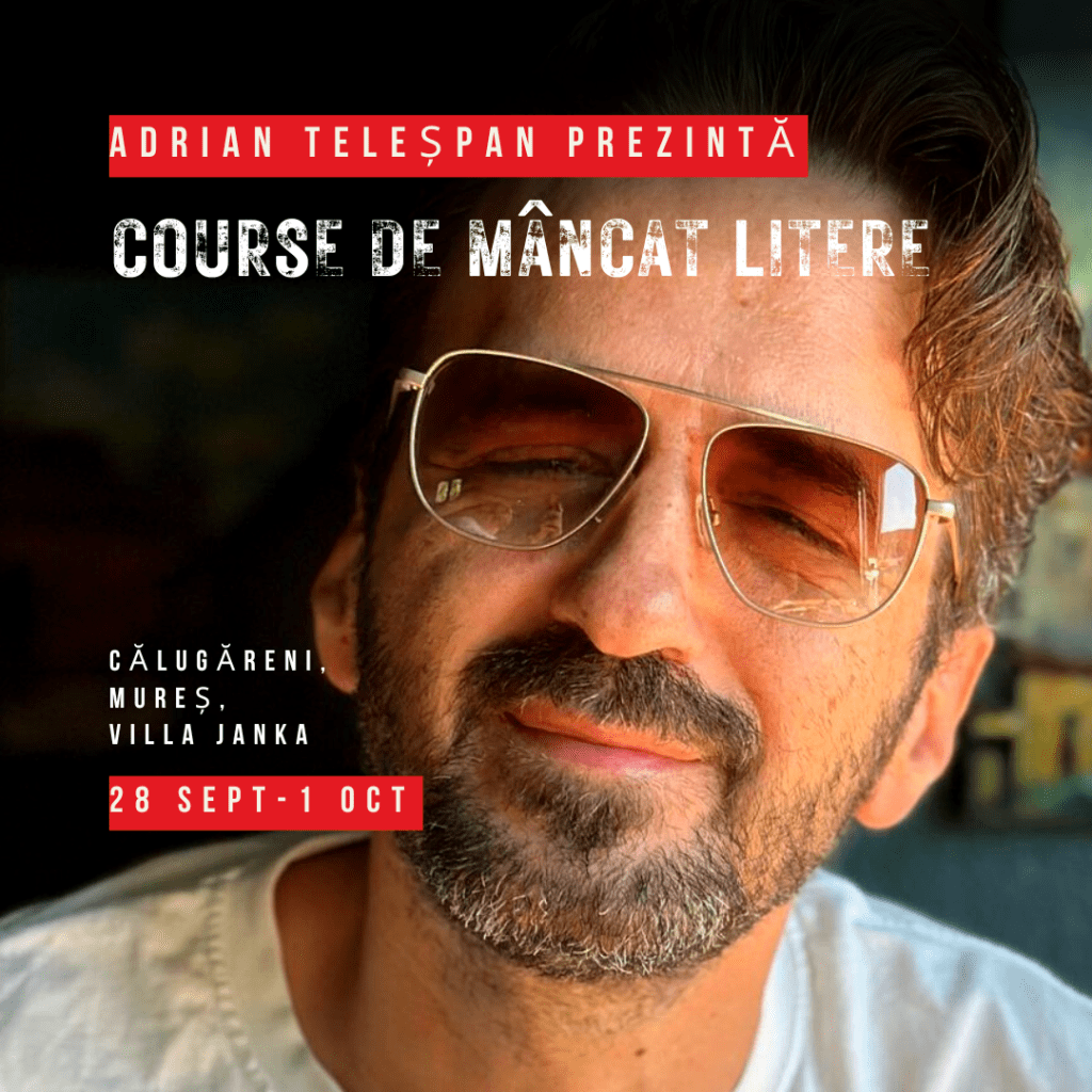 „Pe scurt, ce se întâmplă. Adică ce-am zis în video, mai succint. Avem 4 zile, din care 2 întregi, de-a lungul cărora se va mânca bine și se va scrie. De Joi, 28 Septembrie, până Duminică, 1 Octombrie. Cursul are la bază un schelet, o structură de 7 întrebări pe care le vom folosi ca să scriem o poveste care nu va avea mai mult de 5-6 pagini. Mărimea poveștii este strict legată de timp, adică la această dimensiune ne permitem să și citim, să și dezbatem, să și îmbunătățim povestea. Prima întrebare este: Cine sunt eu și ce mesaj am? Restul le aflați acolo. Pare ușor, dar, de obicei, durează o viață să răspundem, chiar mai mult. Vor exista 5 sesiuni de scris a câte două ore, în timpul cărora se va răspunde la cele 7 întrebări, deci vom comasa unele întrebări. Info bonus: De o formă metaforică și nu numai, întrebările vor avea același gust ca și mâncarea. Vor exista și întrebări secundare pe lângă cele 7 principale, menite să ne ajute să ne punem la lucru imaginația sau memoria. Pentru că nu e foarte mult timp, am mai zis, se va scrie în timp ce se mănâncă, mai ales că ne putem invita și simțurile să scrie alături de noi, sunt convins că mâncarea miroase mult mai frumos decât unele dintre experiențele pe care le vom povesti în scris. În timp ce participanții scriu, noi vom pregăti mâncarea în proximitatea lor, poate nu ne vedem direct, dar, cu siguranță ne vom auzi. Evident, în timpul sesiunilor de scris, dacă participanții vor simți blocaje, ei pot alege să se oprească din scris, să alerge pe coclauri, să ne ajute în bucătărie sau să pună întrebări la care se va răspunde sau nu. Nu garantăm că avem toate răspunsurile. Alcool se va consuma doar după ora 15:00, hai 13:00, întrucât scopul cursului e scrisul. Atât. Nu uitați, acest curs nu se adresează doar persoanelor care își doresc să devină scriitori. Recomandat oamenilor care au o cârdășie sau o prietenie plăcută. Noi preferăm să ținem meniul pentru noi ca să vă surprindem. Dacă fix acest detaliu este singurul care vă împiedică să participați la curs, contactați-ne și vă vom comunica meniul. Și, dacă nu am fost destul de explicit în video, mesele vor avea ca element comun ideea de Prânz de Duminică. Familie cât de cât funcțională, care încă suportă să stea la aceeași masă sau e obligată de sărăcie. Stați liniștiți, meniul nostru nu va fi pe sărăcie.” Adrian Teleșpan