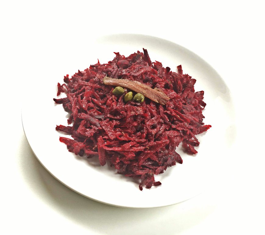 Un fel de alla puttanesca, doar mai putine ingrediente: capere, anchois si sfecla, incredibil de gustos! Salata de sfecla e super simplu de facut, si ca bonus contine Acid Folic, minerale, carbohidrati si ceva fibre, pestele vine cu un plus de proteine si B-uri :). PS: e un prilej minunat sa folosim uleiul din conserva de anchois! #zerorisipa 🙂 Timp Pregatire:  10 MIN  # Timp Total: 10 MIN  #Portii: 3 #Dificultate:  SUPER SIMPLU … Continuă să citești Salata de sfecla cu capere si anchois